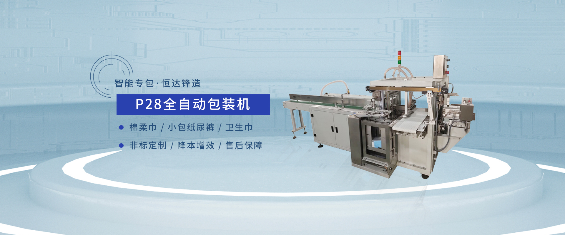 廈門(mén)恒達(dá)鋒機(jī)械有限公司成立于2008年,是一家集產(chǎn)品研發(fā)、生產(chǎn)、銷(xiāo)售、服務(wù)于一體的現(xiàn)代型企業(yè)。恒達(dá)鋒系列產(chǎn)品已覆蓋護(hù)理墊、衛(wèi)生巾、紙尿褲、拉拉褲、寵物墊等后道全自動(dòng)包裝及半自動(dòng)包裝等整體解決方案,產(chǎn)品并逐漸延伸至醫(yī)療、化妝品、食品等包裝裝備領(lǐng)域。