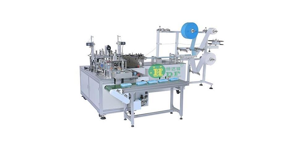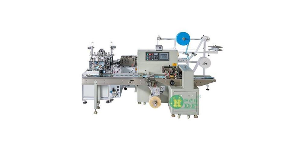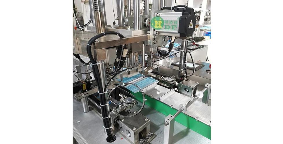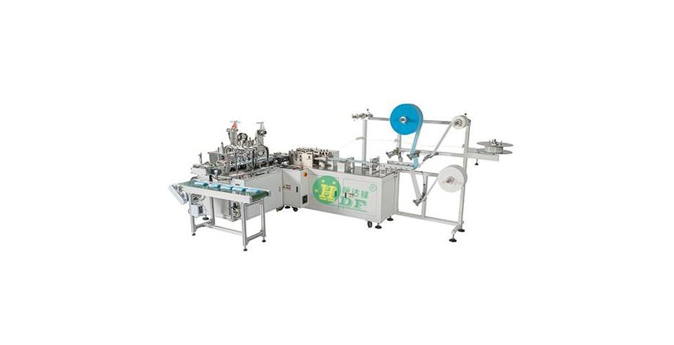 It is a fully automated machine that produces flat masks. It automatically produces the mask body, connects to the bridge of the nose, welds the ear straps, completes the finished product and package, and does not require manual operation. It is suitable for the production of outer ear masks, and inner ear straps can also be customized .